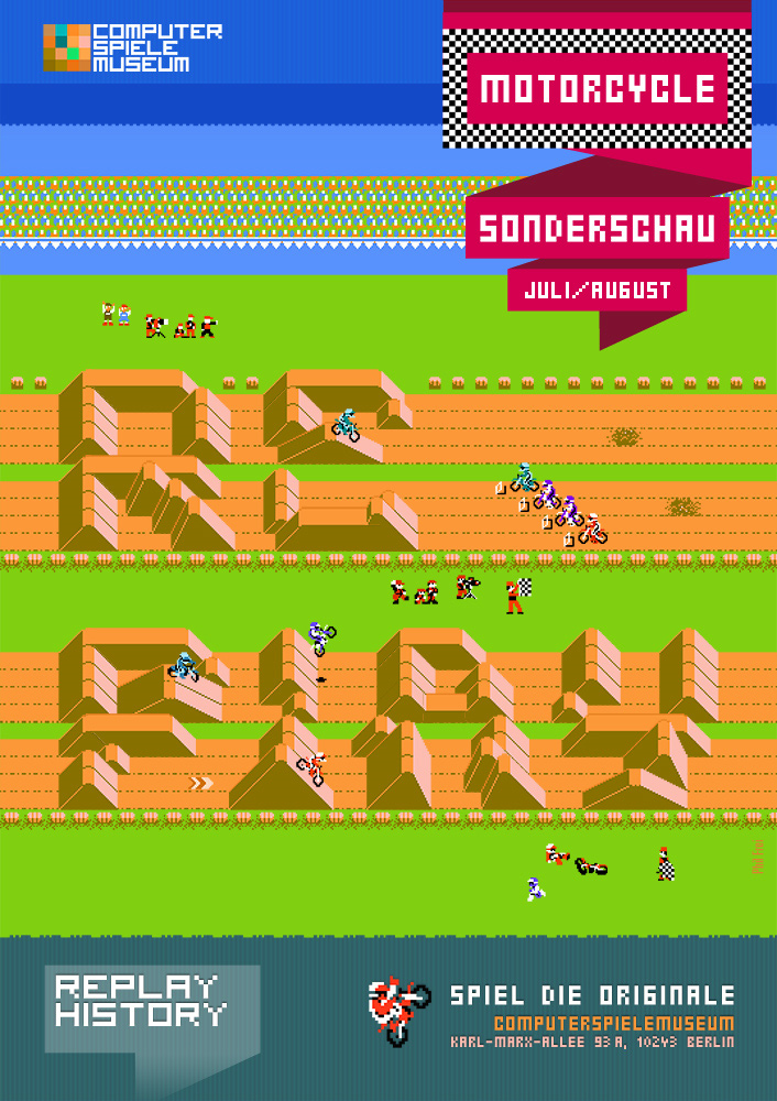 Im Berliner Computerspielemuseum kann man sich nun im Juli und August auf unserer Sonderschau „Motorcycle“ Spiele, Boxen und Zubehör ansehen, aber auch an 9 verschiedenen Spiele-Stationen selbst Hand anlegen und um den Sieg kämpfen. Sammlerstücke wie „Excitebike“ für das NES, „Action-Biker“ für den C64, „Full Throttle“ für den PC oder „Motocross Manics“ für den Gameboy sowie mehr als 15 weitere Titel sind spielbar und warten auf Highscore-Stürmer. So lohnt sich also auch ein wiederholter Besuch des Computerspielemuseum. Auch die Motorsportfreunde können ruhig einmal einen Boxenstopp in der Karl-Marx-Allee 93a einlegen und sich in virtuellen Rennen einen Fight mit ihren Freunden liefern, ohne die Gefahr bei einem Crash verletzt zu werden. Der Besuch der Sonderausstellung ist im normalen Eintrittspreis (8 Euro, 5 Euro ermäßigt) natürlich enthalten.