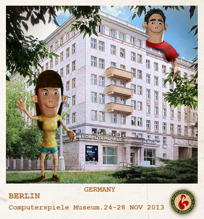 Die beiden portugiesischen Künstler André Figueiredo und Sara Matos haben die Idee auf einer Europa Tour von jeder Stadt, die sie besuchen einen computeranimierten Kurzfilm in 3D zu erstellen und einem breiten Publikum vorzustellen. Unter den vielen europäischen Stationen wie Paris, Madrid, London, Amsterdam, Prag oder Stockholm ist auch Berlin und nun schlagen die Künstler an mehreren Tagen bei uns im Computerspielemuseum ihre Zelte auf. Wer einmal wissen will, wie ein 3D-Animationsfilm entsteht, kann sich bei uns aus erster Hand und mit einem Blick über die Schultern der Englisch und Portugiesisch sprechenden Künstler informieren. Für Besucher der Ausstellung ist dieses interessante Projekt schon im Preis inbegriffen. Viel Spaß.